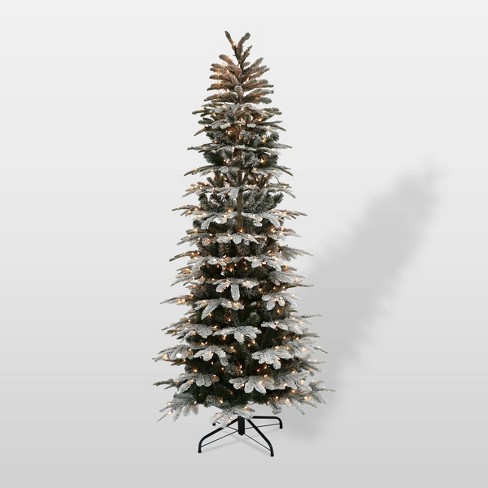 7 Pre Lit Flocked Alaskan Slim Artificial Christmas Tree Warm Clear Lights Stores Centers 208