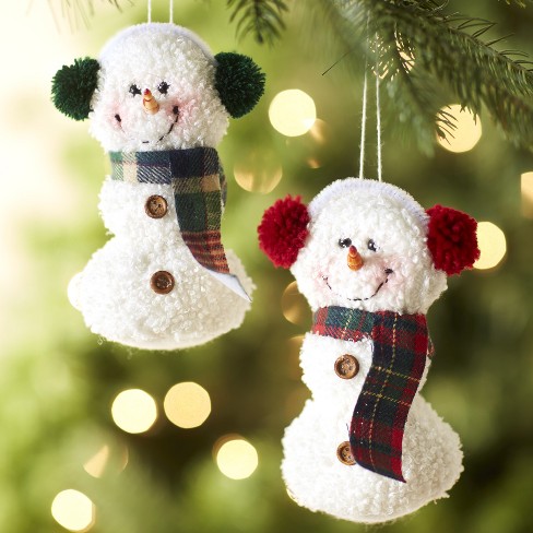 Lakeside Set Of 2 Plush Snowman Christmas Tree Ornaments With String For Hanging Target