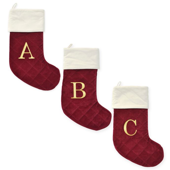 Harvey Lewis Monogram Letter Luxurious Velvet Stocking In Red Bed Bath Beyond