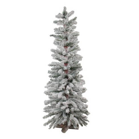 2 3 4ft Artificial Christmas Tree Slim Pencil Flocked Snow Green Pine Jute Base Ebay