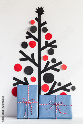 If you are not familiar with washi tape it s inexpensive paper thin craft tape that can be used in a variety of ways. Do not forget to put a gold star on top to complete the decoration for the holidays. The small washi tape christmas tree on the wall has been made with the help of black polka dot tape and a gray one.